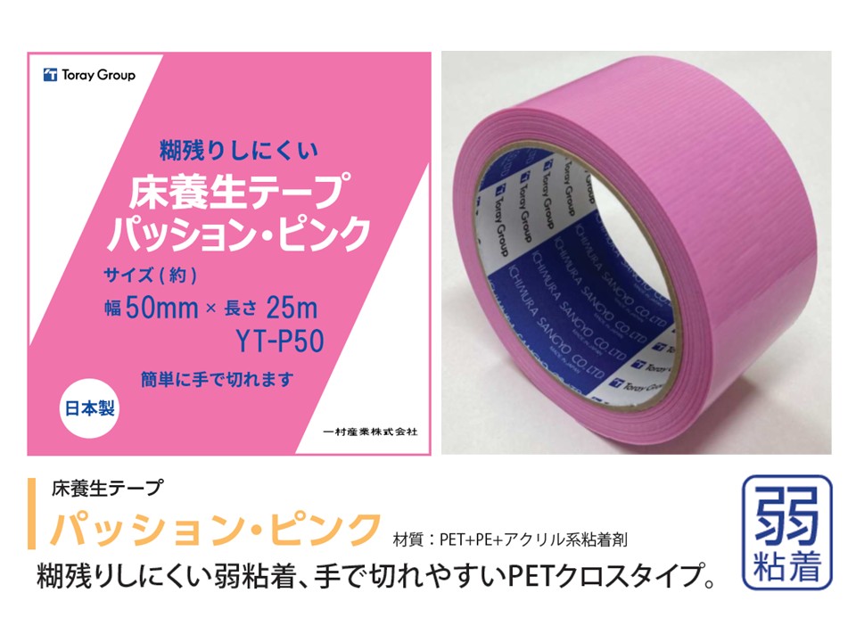 | 床養生テープ | YT-P50 | パッション・ピンク | 6.40 | 2.56 | 0.110 | 50mm x 25m | 30巻 |
