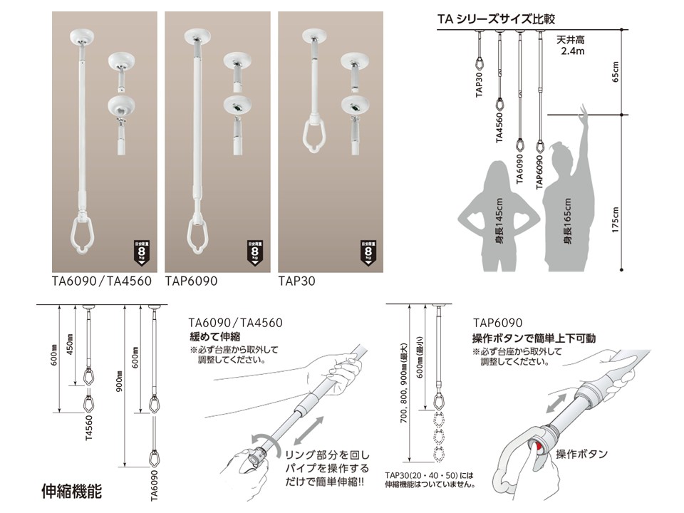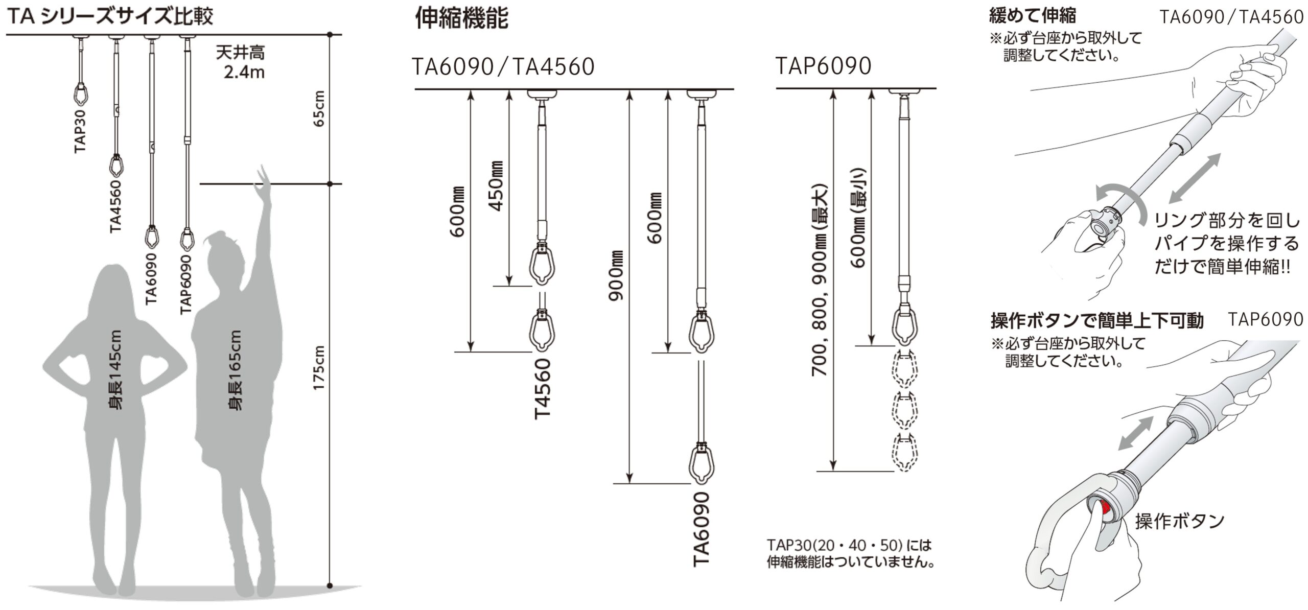 ※「TAP20・40・50」は受注生産対応(伸縮機能なし)となります。