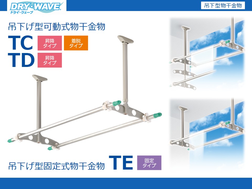 | 吊下型物干金物 | 可動式(昇降・着脱) | TC6090 | W450xD39xH628mm | ステンカラー | 2本入 | 約20kg |