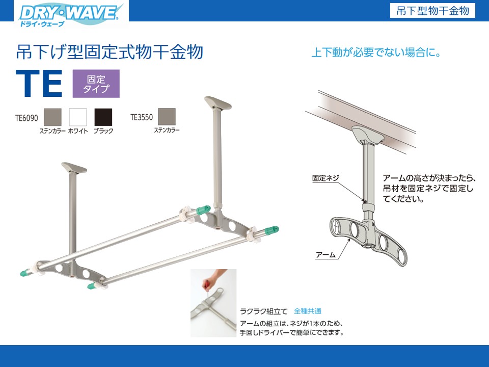 | 固定式 | TE6090 | W450xD39xH628mm | ステンカラー ホワイト ブラック | 2本入 | 約20kg | |