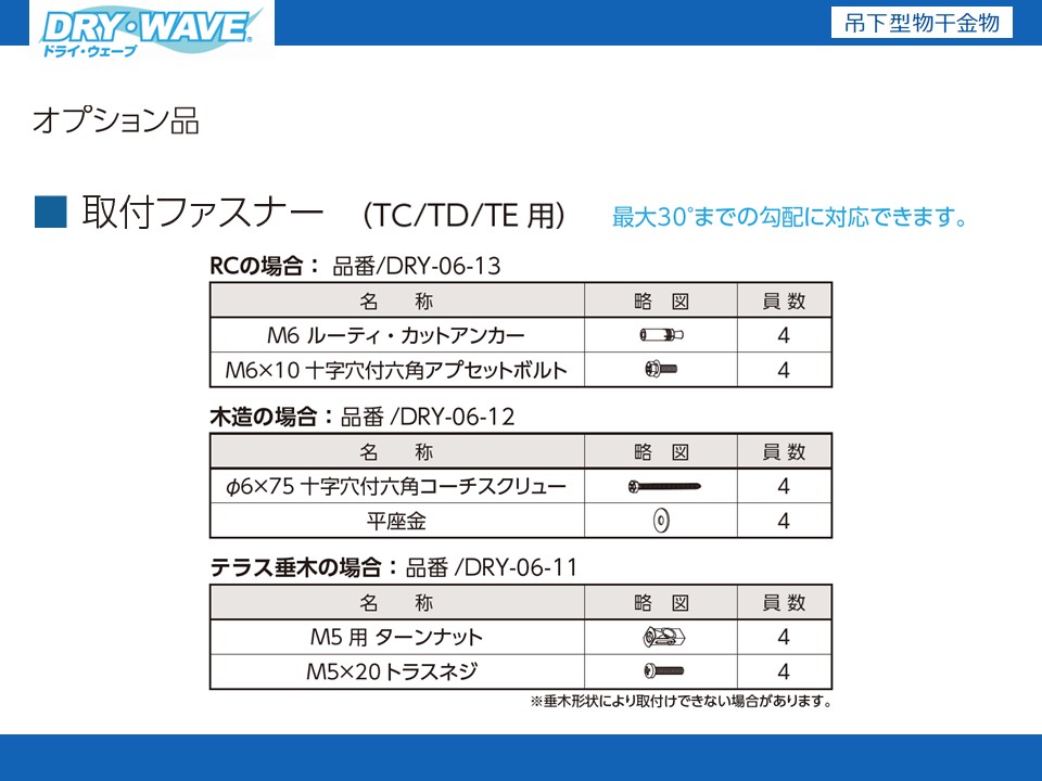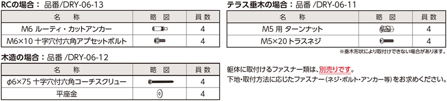 | 品名 | タイプ | 品番 | 寸法 | カラー | 入数 | 目安耐荷重 |