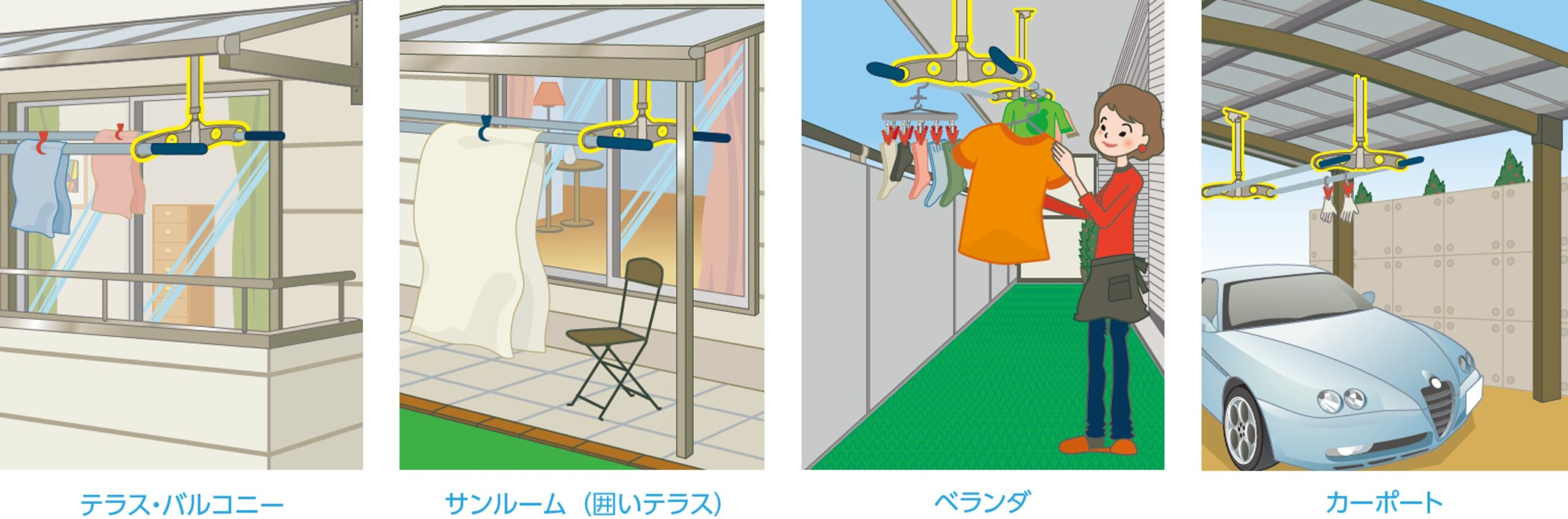 多機能なのに簡単操作、様々なシーンで大活躍の吊下げ型物干金物