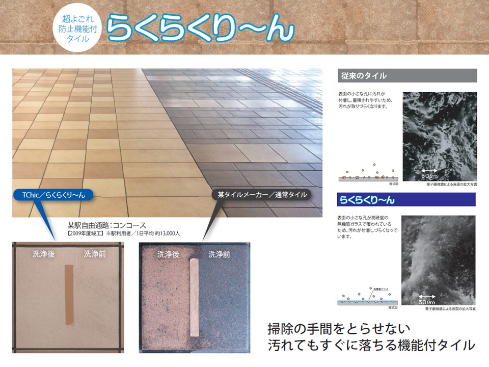 超よごれ防止機能付きタイル「らくらくり~ん」