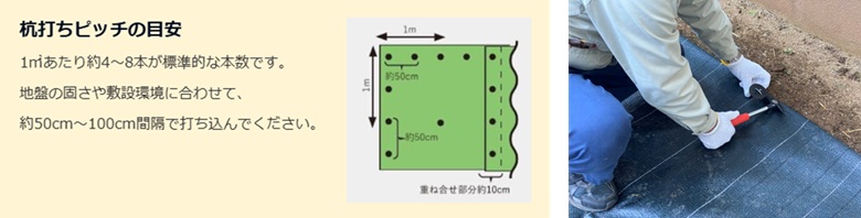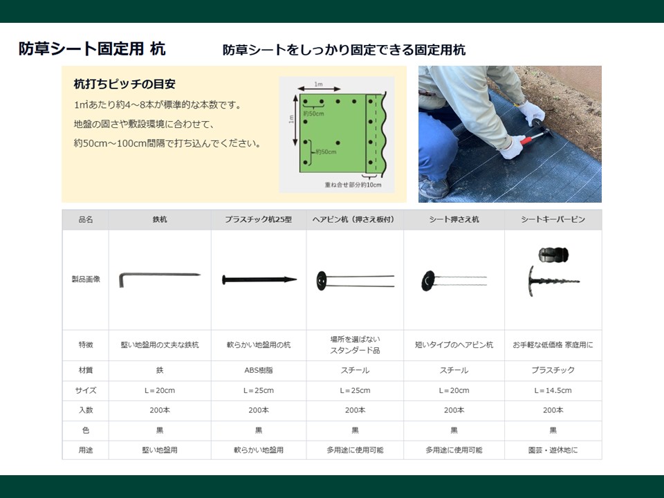 防草シートの施工時に打ち込むことで、