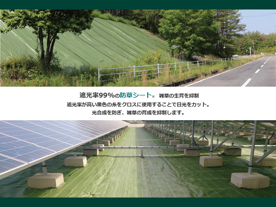 遮光率99%の防草シート。雑草の生育を抑制。