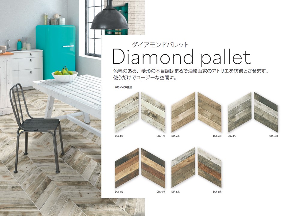 | DIA-〇/R ※〇=1~5 | [右]700x400菱形 | 約700×400×10mm | - | 7枚 | 0.98枚/㎡ | |