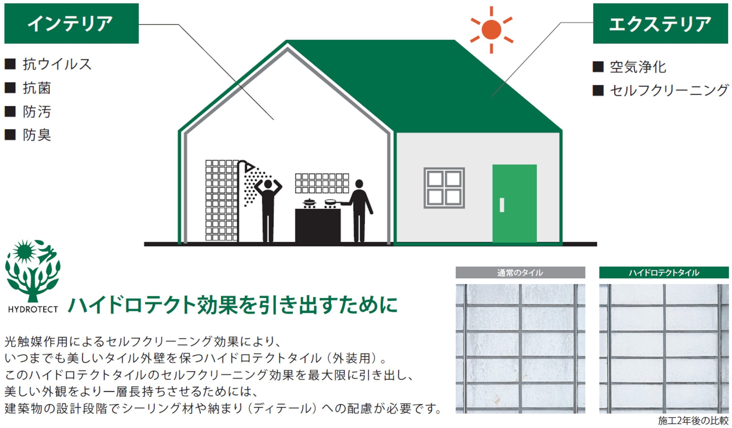 抗菌・抗ウイルス、空気浄化、セルフクリーニング機能付きタイル「ハイドロテクト」
