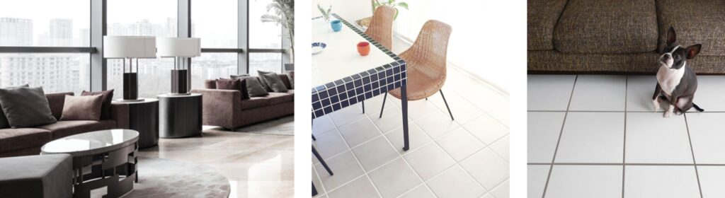 ※一部、外装床用では超よごれ防止機能付きタイル「らくらくり~ん」となるものがございます。