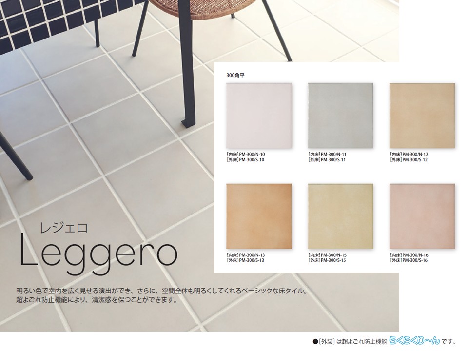 ※一部、外装床用では超よごれ防止機能付きタイル「らくらくり~ん」となるものがございます。