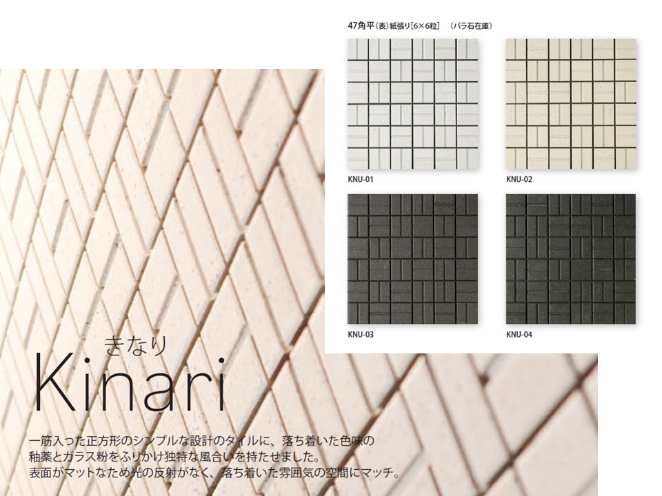 様々な形とカラーが揃った内装タイルで自分好みの空間をカスタマイズできます。