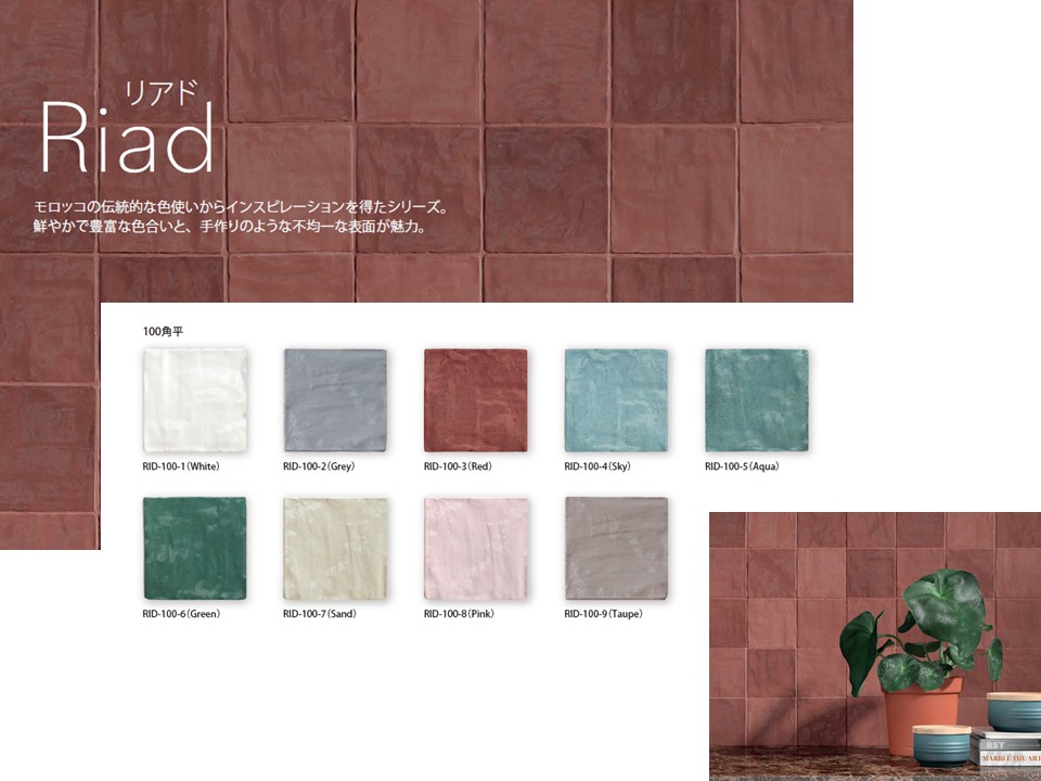 | RID-100-■ | 100角平 | 100×100×9mm | — | 50ピース | 100ピース/㎡ | |