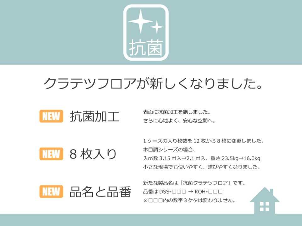 現行品は抗菌仕様の「抗菌クラテツフロア」として販売しております。