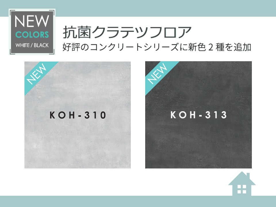 | コンクリート シリーズ  | KOH-310 KOH-311 KOH-312 KOH-313  | 厚:4.5mm 巾:500mm 長:500mm  | 8枚入 | 2.0㎡ | ¥16,200/ケース (¥8,100/㎡)  | |