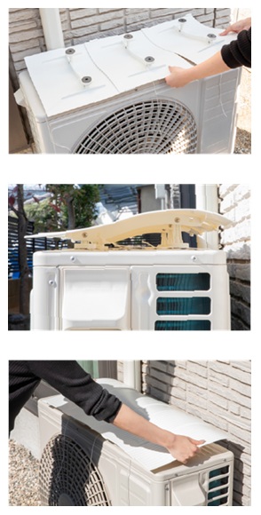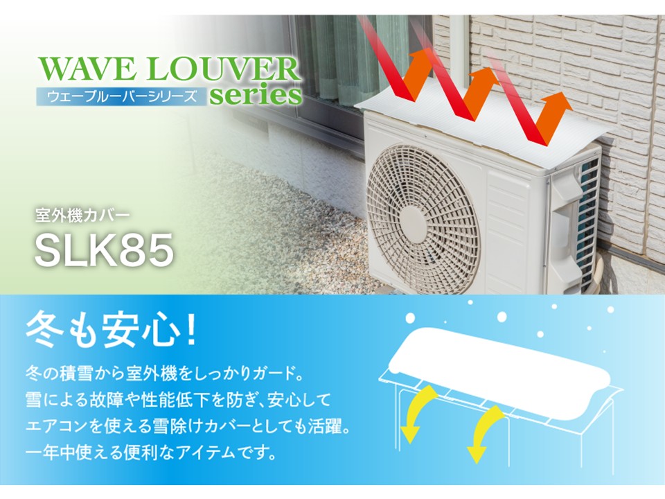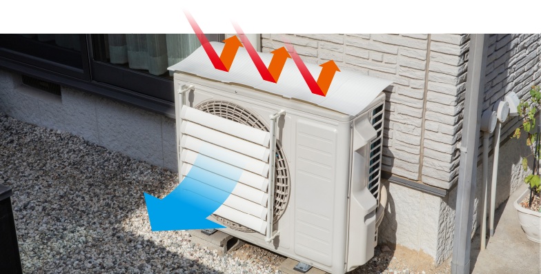 直射日光や雨・雪から守る室外機カバーに、風向きをコントロールする室外機ルーバーをプラスすることで、