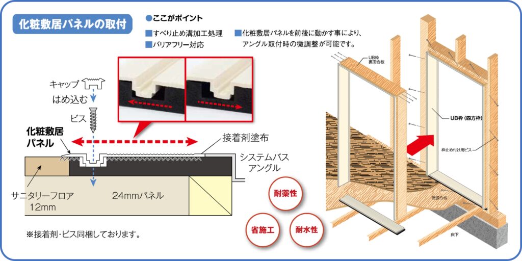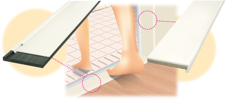 4方枠で使用する敷居パネルには、すべり止め溝加工が施され、バリアフリーにも対応します。