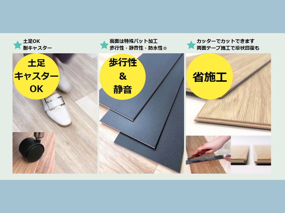 ◆裏面の特殊パット加工で、歩行性・静音性に優れています。